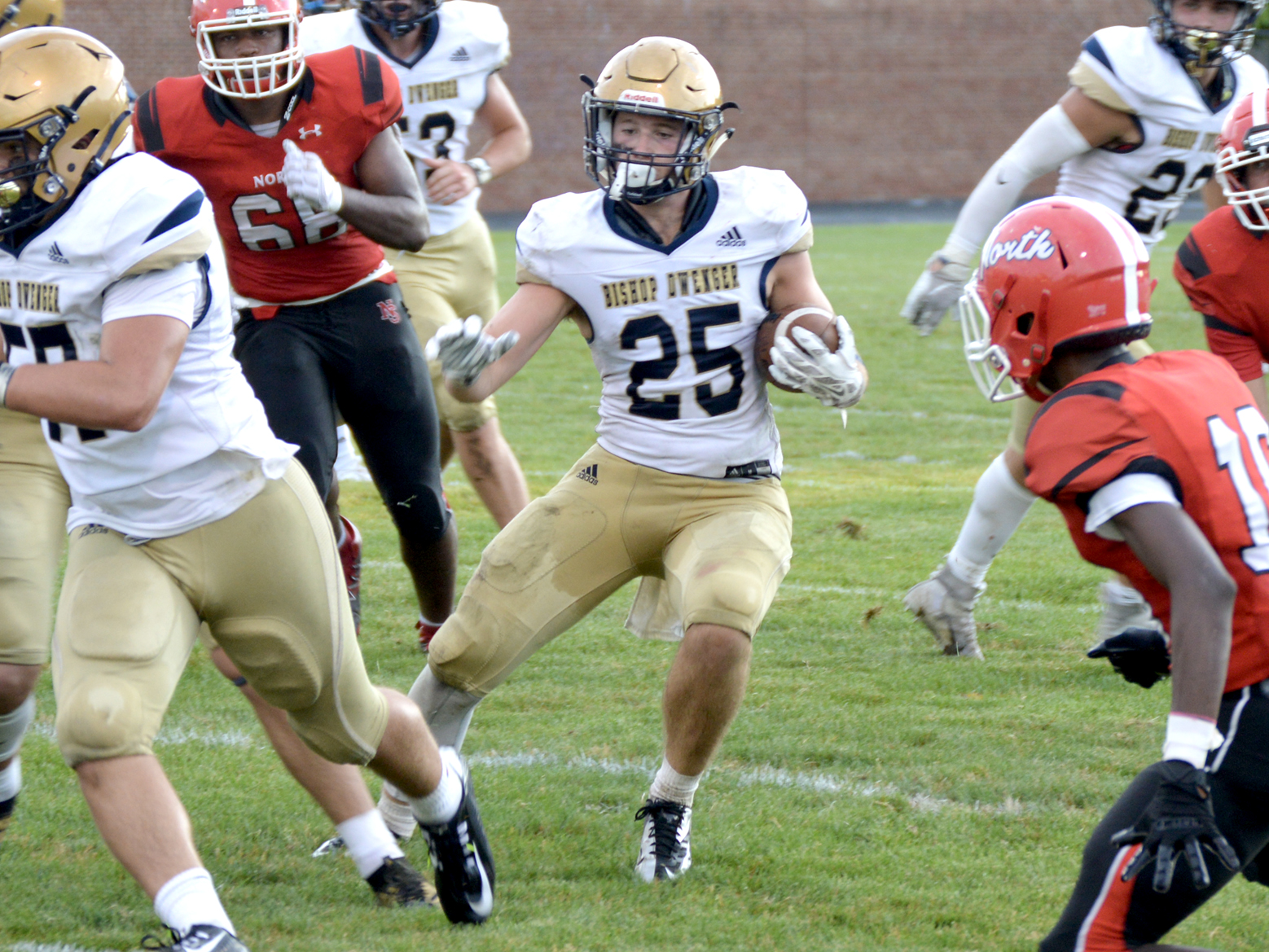 Bishop Dwenger’s Devon Tippmann maneuvers through players during August 28’s game at North Side.