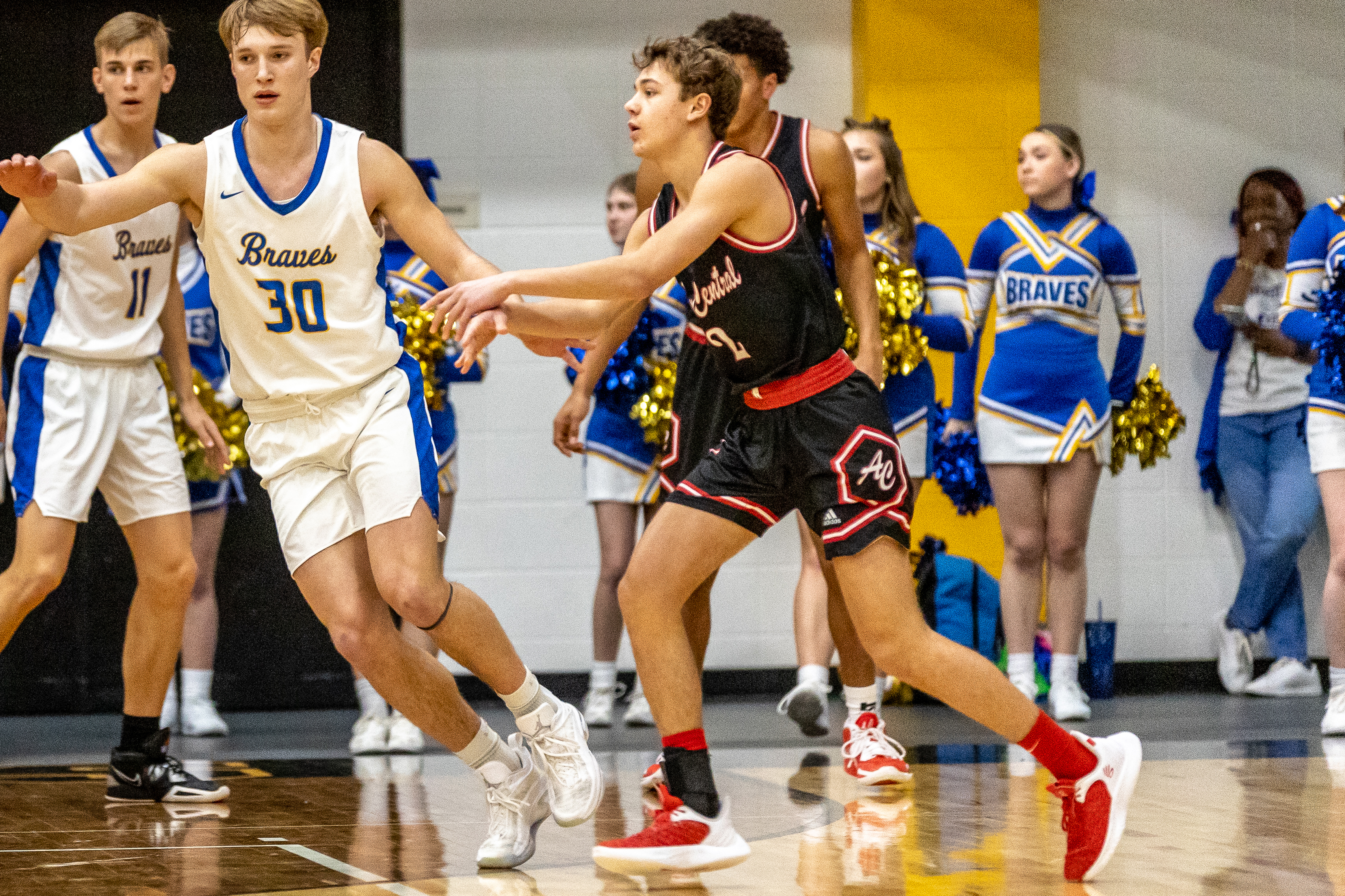Adams Central’s Micah McClure makes a pass against Blackhawk Christian during March 4’s Sectional title game at South Adams. (Photo by Leverage Photography)